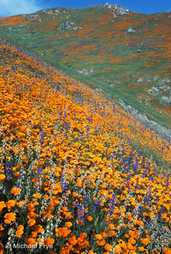 Poppies and other flowers are blooming elsewhere in the state though. I haven’t heard raves about fantastic wildflower displays yet, but the usual hot spots like Antelope Valley, Figueroa Mountain, and Carrizo Plain seem to have good blooms. They might get better in the next week or two, as the flowers seem late everywhere. See these reports from DesertUSA for more details.