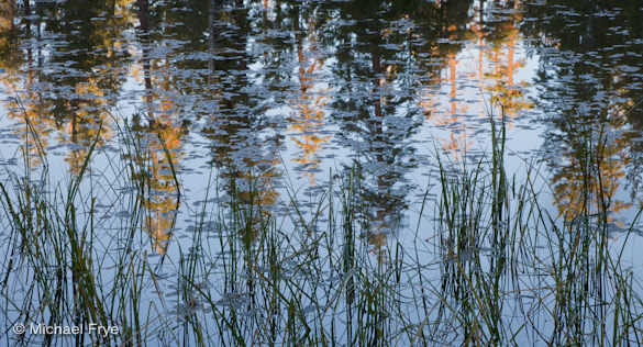 Reeds and reflected trees at Siesta Lake, Yosemite