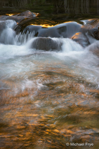 The accompanying photos were made during and just after the five-day workshop. We had a really fun time with a great group of people, and I hope to post some of the student’s photographs soon. The top image shows one of the participants, Jim, photographing one of the abundant yellow maples. The second image is from a new spot for me. With all the time I’ve spent in Yosemite Valley you’d think there’d be nothing new to discover, but I’m still finding juxtapositions of light and subject that I’ve never noticed before. This is a small rapid that gets wonderful reflections from the late-afternoon sun hitting El Cap.