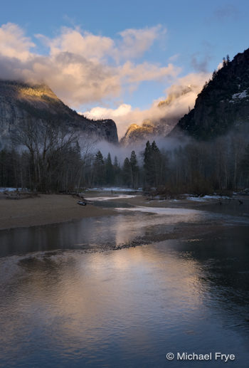 Fantastic images as usual. I love reading your updates as it helps me plan my escapes to Yosemite or as I call it…”Disneyland for Nature Lovers”. My Dad and I were in the valley this weekend and we hoped that the storm would leave snow at our doorstep Sunday morning. After shooting at the Gates of the Valley we used your iPhone app to help guide us to Cathedral Beach in hopes of finding reflections of El Cap and the Three Brothers. Since you asked here is my image from Sunday morning. Thanks for the great app!