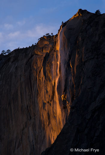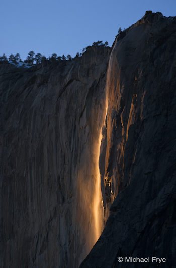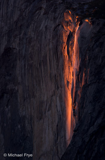 You can actually help with this process. There are plenty of Horsetail Fall photos on the web, but few give the date they were made or include the EXIF data. So if you’ve captured a Horsetail Fall image with good light during the dates in question—let’s say from February 12th to 28th—post a link to it in the comments, or email a small JPEG to me, and include in the comments or email the date and time the image was captured. But please only do this if you’re sure the information is accurate; I know it’s all too easy to have the wrong time or date set in your camera.