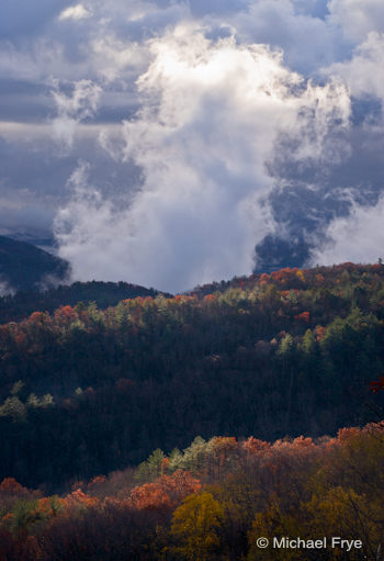 The accompanying image was made during my trip to South Carolina last November. It was a fast-changing situation—the sun suddenly broke through, and I missed the exposure slightly, so the brightest highlights at the top of the clouds were blown out. By the time I adjusted the exposure the scene had changed.
