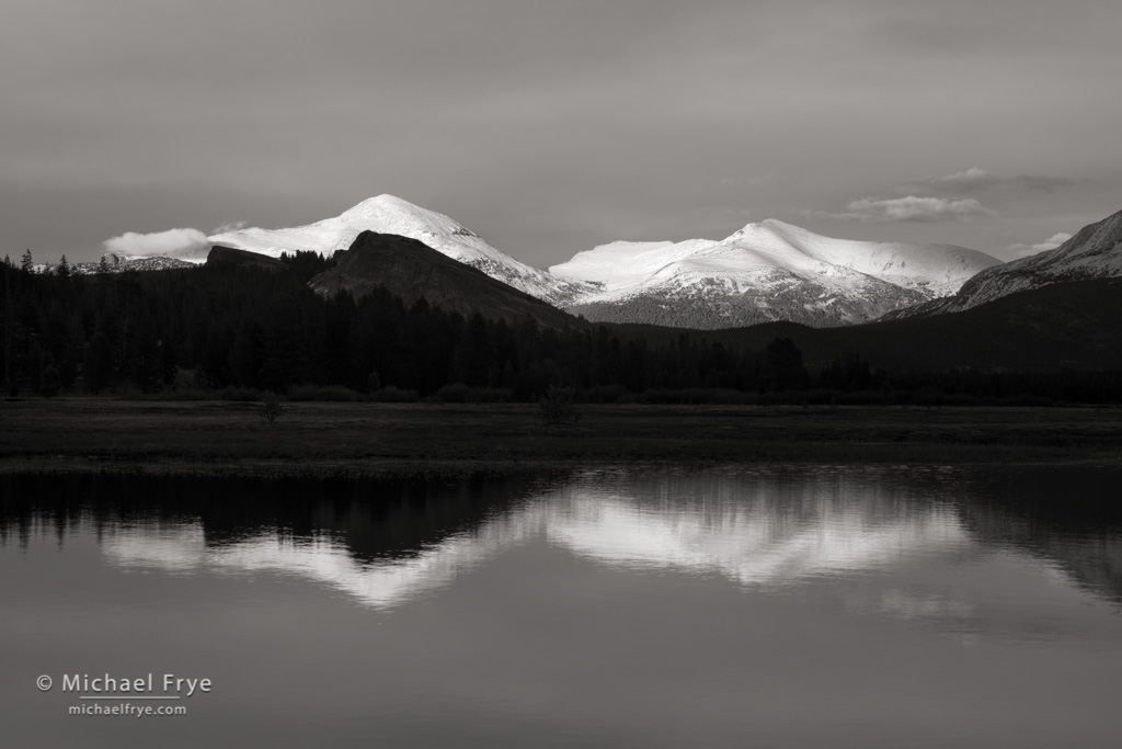 Mt. Dana and Mt. Gibbs reflected in a snowmelt pond, Tuolumne Meadows, 7:19 p.m. (after the snow squall)
