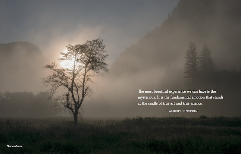 In the early 2000s, my wife Claudia – then manager of The Ansel Adams Gallery – saw the need for small, inspirational books for the Yosemite visitor. She worked with Steve Medley, the president, publisher, and editor for the Yosemite Association (now Yosemite Conservancy), to find meaningful quotes about nature, conservation, and Yosemite, and pair those quotes with my photographs to create the original Yosemite Meditations book. Since then, Yosemite Meditations has gone through several reprints, and spawned two companion volumes: Yosemite Meditations for Women, and Yosemite Meditations for Adventurers.