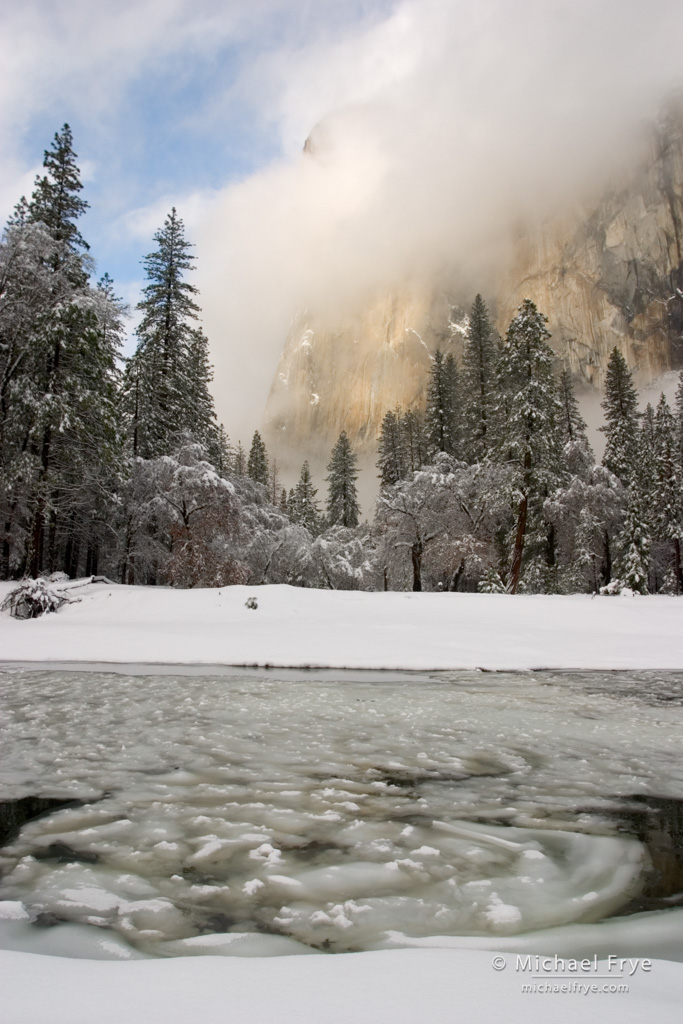 This photograph from Yosemite has beautiful swirling ice patterns in the foreground, and mist-shrouded El Capitan in the background. But it doesn’t work—the two halves of the image don’t fit together because the lines in the bottom are mostly horizontal, while the lines in the top are mostly vertical. It looks disjointed: