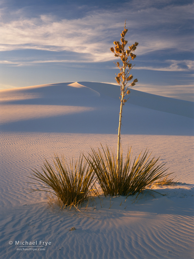 On the other hand, finding a truly eye-catching foreground can add greatly to a scene, especially if the background is not that compelling. While I liked the shapes of the dunes in New Mexico’s White Sands National Monument, I thought this lone yucca was even more interesting. This image is all about the foreground, while the background takes a secondary role: