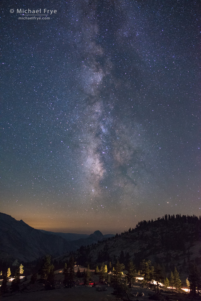 The Milky Way over Half Dome from Olmsted Point, with car lights in the foreground, Yosemite NP, CA, USA