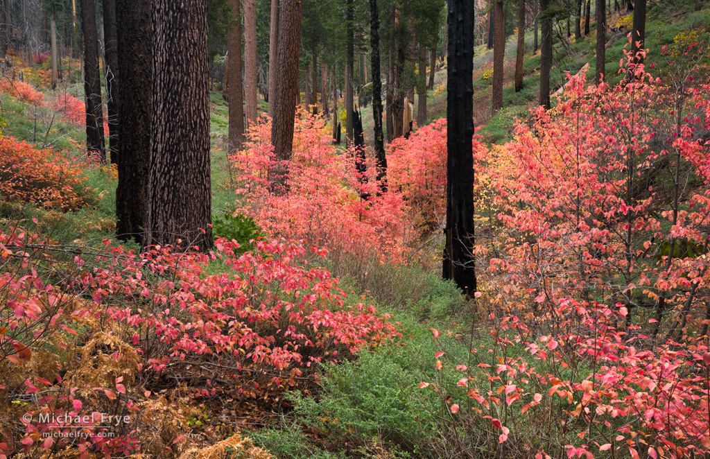 Dogwood understory in a burned area, autumn, Yosemite, Monday afternoon along Highway 120