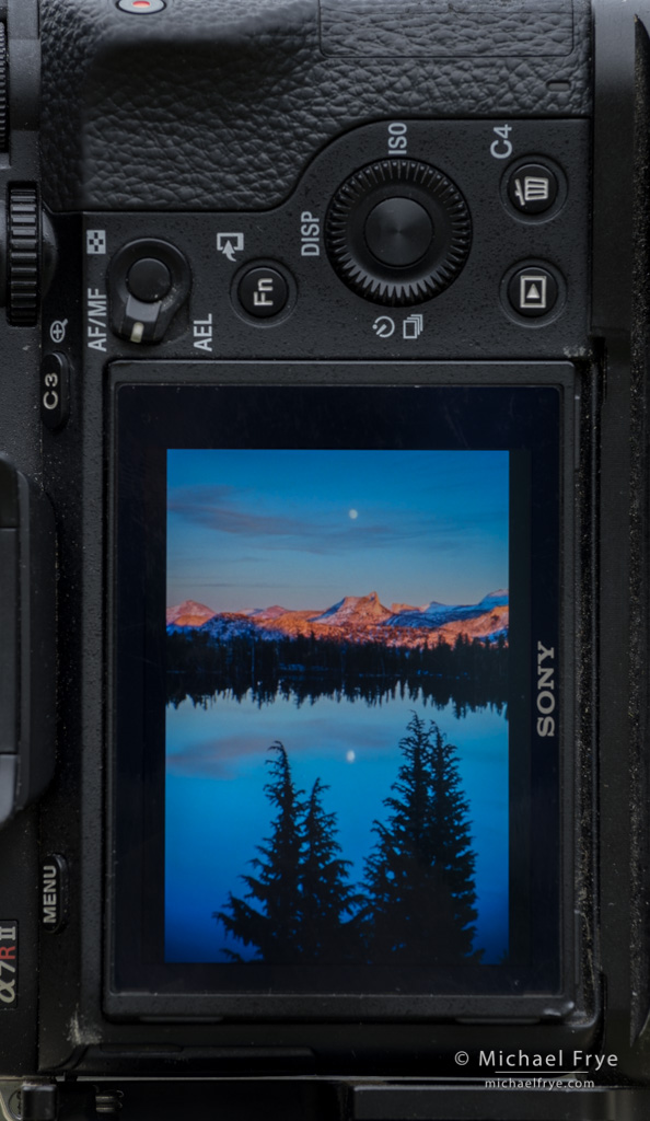 On many cameras the highlight alert (which everyone calls the blinkies) is not enabled by default. Fix that now! The highlight alert makes any part of an image that’s overexposed flash on and off, and is one of the most important tools for evaluating exposures in the field. In most cases you don’t want to see any part of an image blinking at you; if you do the photograph is probably overexposed, and you want to make a darker exposure.