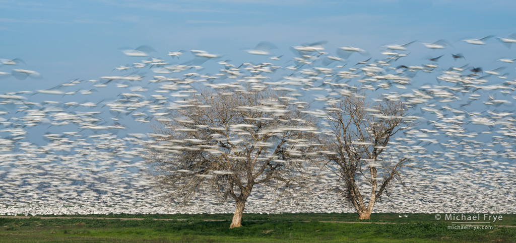 13. Goose blizzard – Ross’s geese flying past cottonwood trees in the San Joaquin Valley, CA, USA