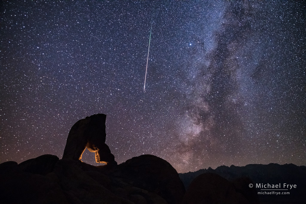 32. Arch, meteor, and the Milky Way, Alabama Hills near Lone Pine, CA, USA