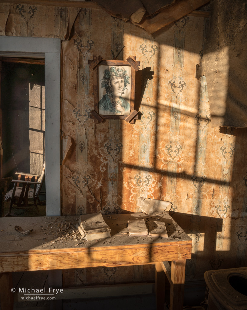 28. Books, portrait, and chair in the morgue, Bodie State Historic Park, CA, USA