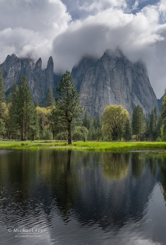 19. Cathedral Rocks and Spires and a spring pond, Yosemite NP, CA, USA