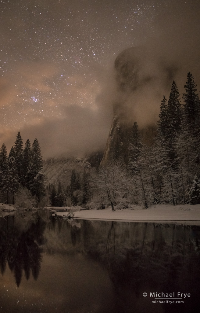 7. Stars, mist, Three Brothers, and the Merced River, Yosemite NP, CA, USA