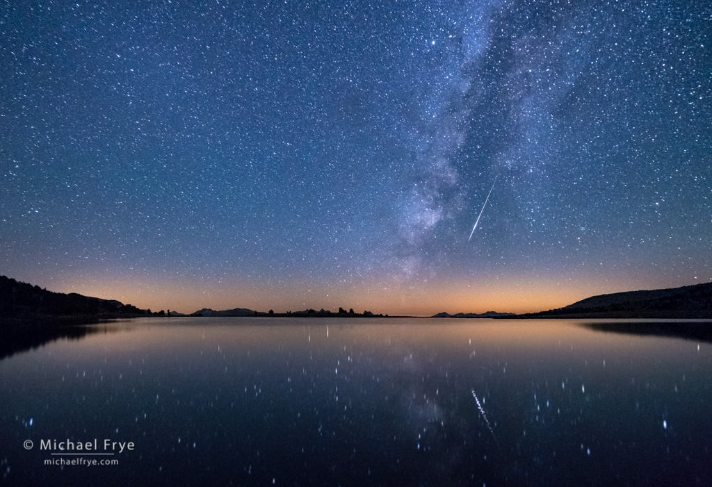 33. Meteor and the Milky Way over an alpine lake, Yosemite NP, CA, USA