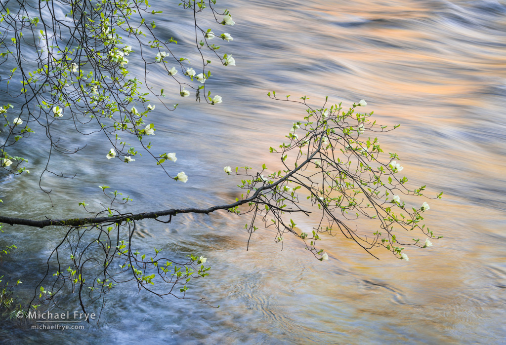 17. Morning reflections, dogwoods and the Merced River, Yosemite NP, CA, USA