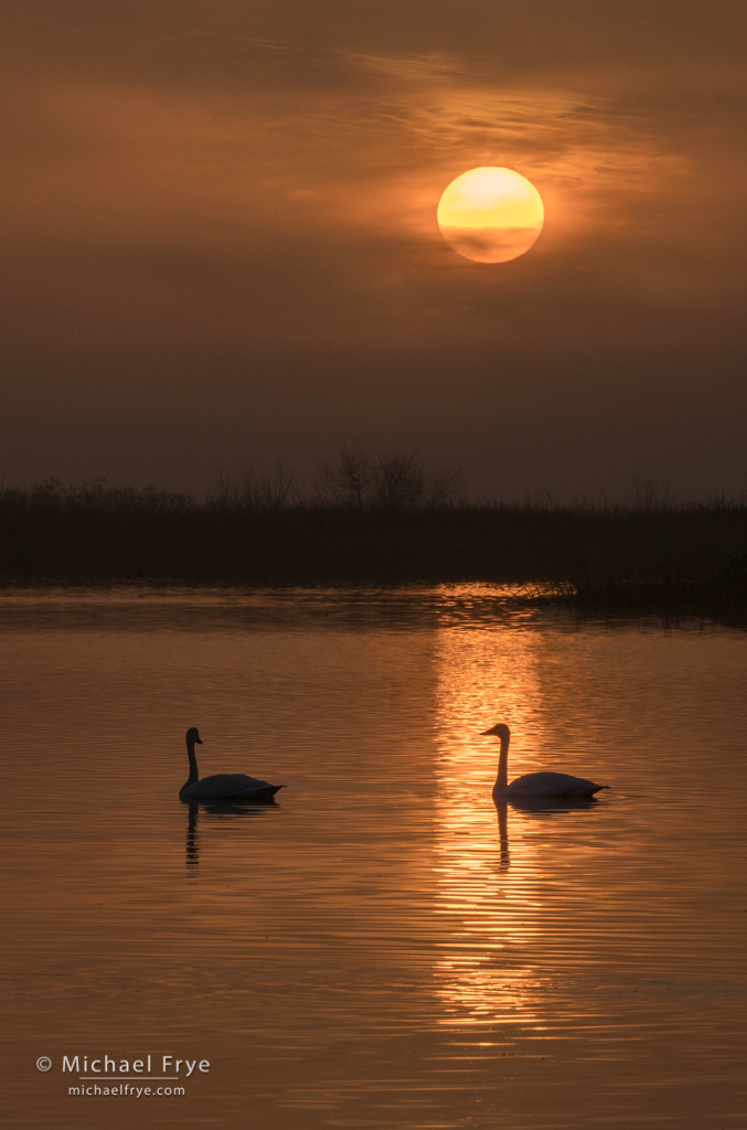 3. Tundra swans at sunrise in a San Joaquin Valley marsh, CA, USA