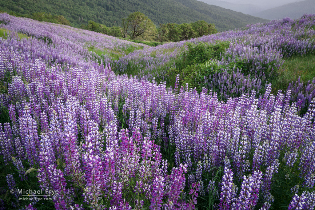 Unfortunately the lupines were past peak by the time our workshop started, but I’m glad I was able to catch some moments of fog, light, and flowers while they lasted. It’s been a great spring; we’ve photographed the amazing bloom in the Carrizo Plain, dogwoods in Yosemite, and then lupines and rhododendrons in the redwood country. And I’m hoping to photograph more wildflowers in the Yosemite high country this summer.