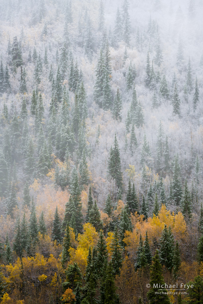 But many of the aspens seem to be undamaged. And it’s Colorado after all, where there are so many aspens that even in a “poor” year you can find plenty of colorful trees. And we’ve had some great weather, with rain, snow, fog, and lots of interesting clouds. The combination of weather and color has been really fun to photograph, and the constantly-changing conditions have kept me going from sunrise to sunset every day. Here are a few images showing some of the best moments so far, and I’m sure I’ll post more soon.