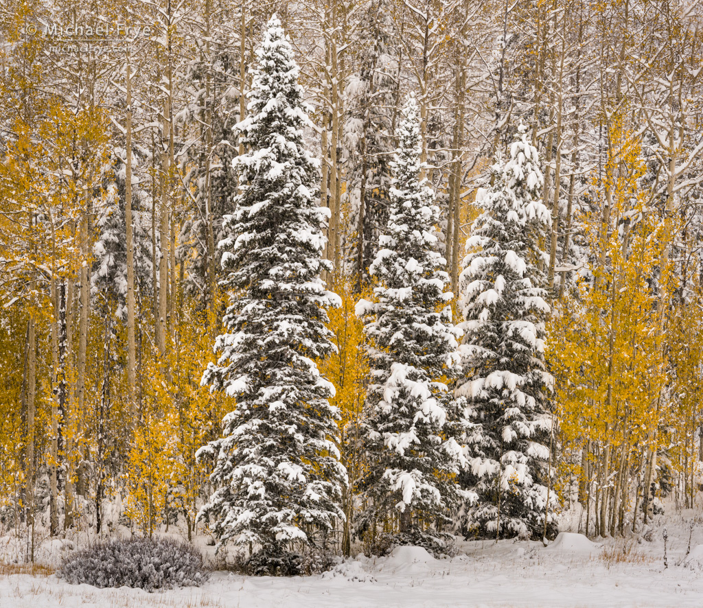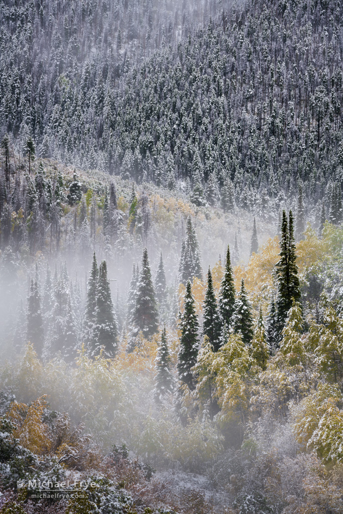 Claudia and I had wonderful conditions on our autumn trip to Colorado. As I said before, it wasn’t the best year for fall color there, but the weather more than made up for that, with rain, snow, fog, and lots of interesting clouds.