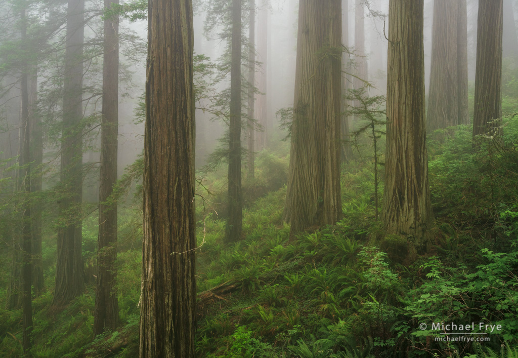 Redwoods in fog, Del Norte Coast Redwoods SP, CA. Fog helps add a sense of depth to scenes like this.