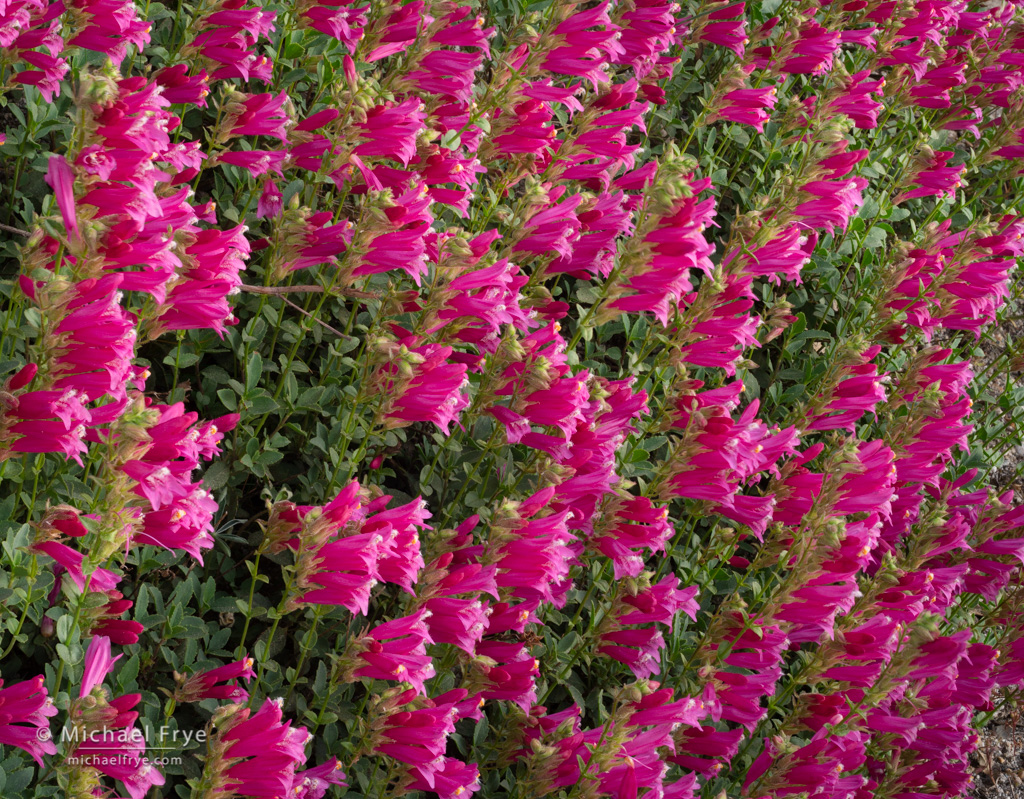 Penstemons, Yosemite. I loved the repeating pattern of these flowers. This was made with a 50mm lens, and again I used focus-stacking to get sufficient depth of field to make everything sharp. This time I blended five exposures, each at f/16.