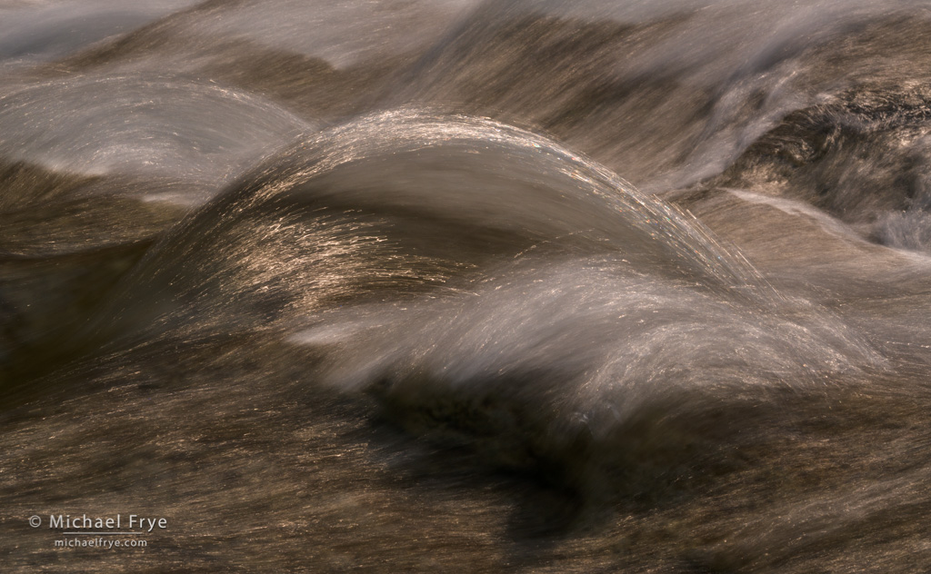 Cascade, Tuolumne River, Yosemite. Sunlight filtering through smoke gave the water a golden glow. The shutter speed was 1/8 of a second at f/22, ISO 250, with a 4-stop ND filter.
