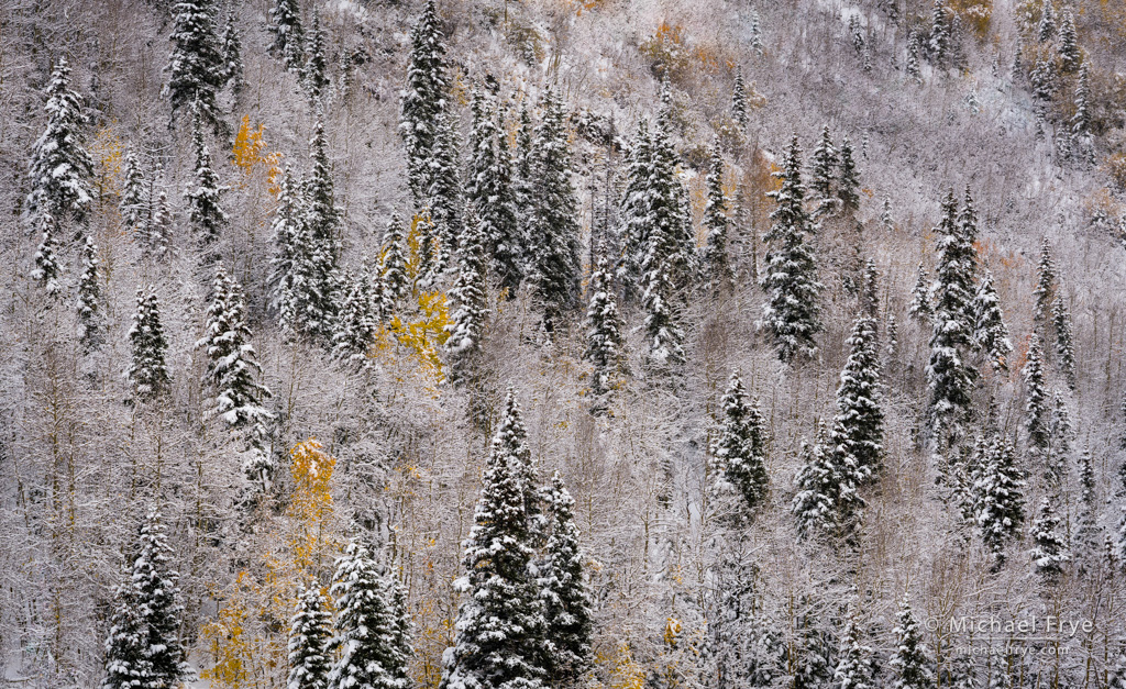 In my last post I mentioned how much I love the transition from autumn to winter, with splashes of yellow amidst beautiful white aspen trunks, snow etching the trees, and the feeling of the long, cold winter settling in. Here are a few more attempts to capture that mood from the mountains of Colorado.