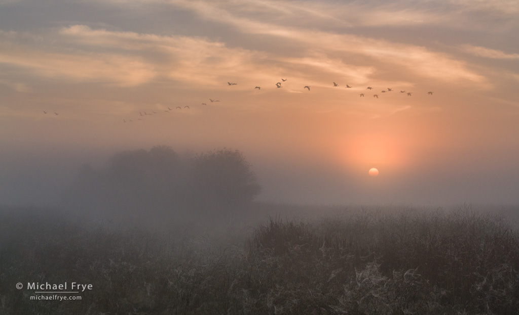 37. Sandhill cranes at sunrise, San Joaquin Valley, California