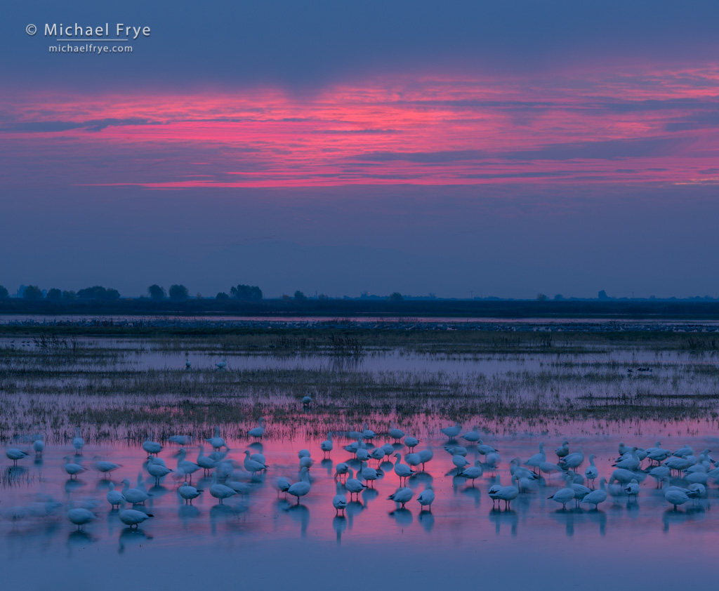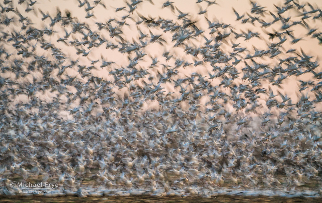 38. Ross’s geese at sunset, San Joaquin Valley, California