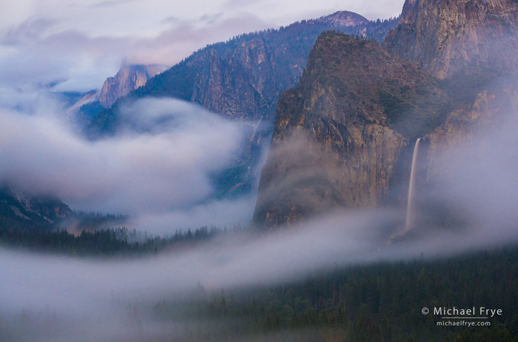14. Half Dome and Bridalveil Fall from Tunnel View at dusk, Yosemite