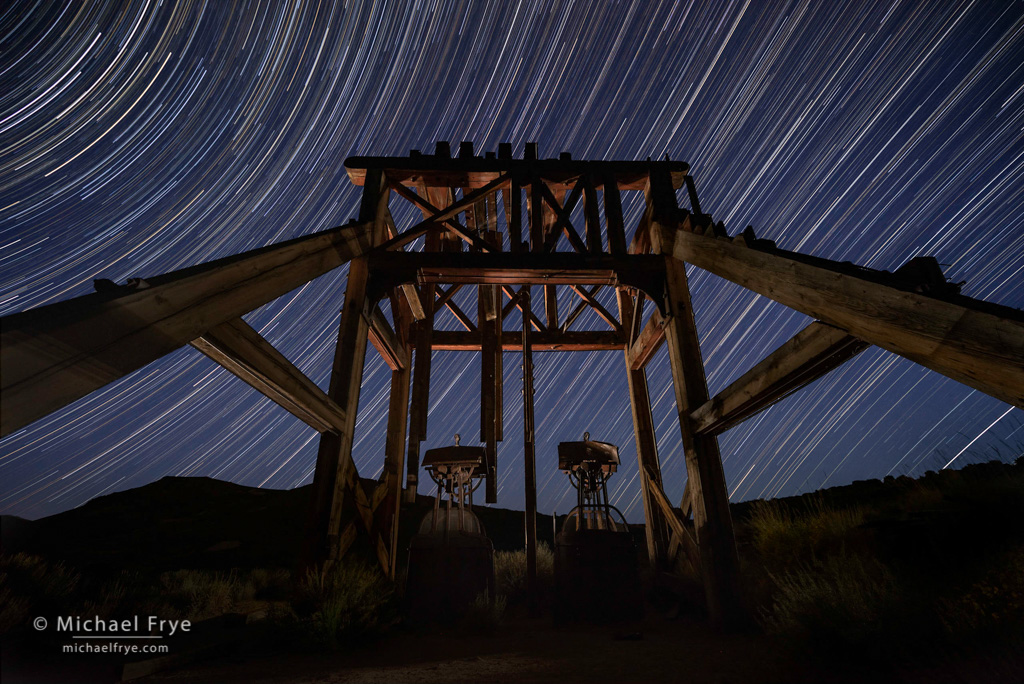 24. Head frame and steam hoist at night, Bodie SHP, California
