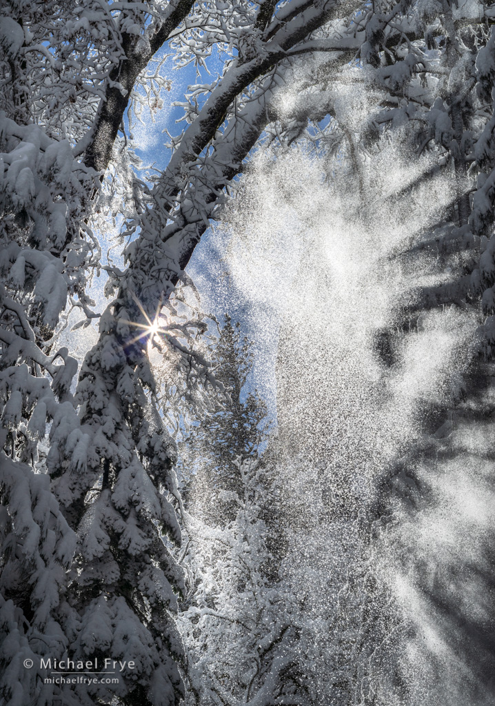 Snow falling from trees #1, Yosemite. (All three of these images were captured at 1/750th of a second at f/16, ISO 100.)