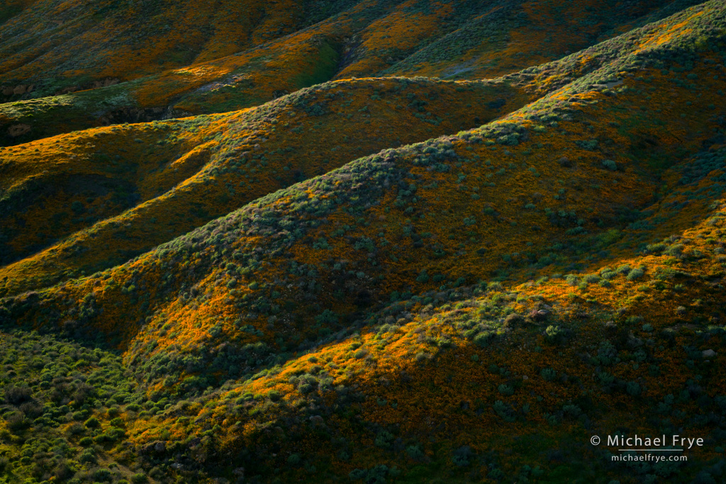 Poppy-covered hills, Walker Canyon, California. 50mm, 1/15th of a second at f/11, ISO 100, polarizer.