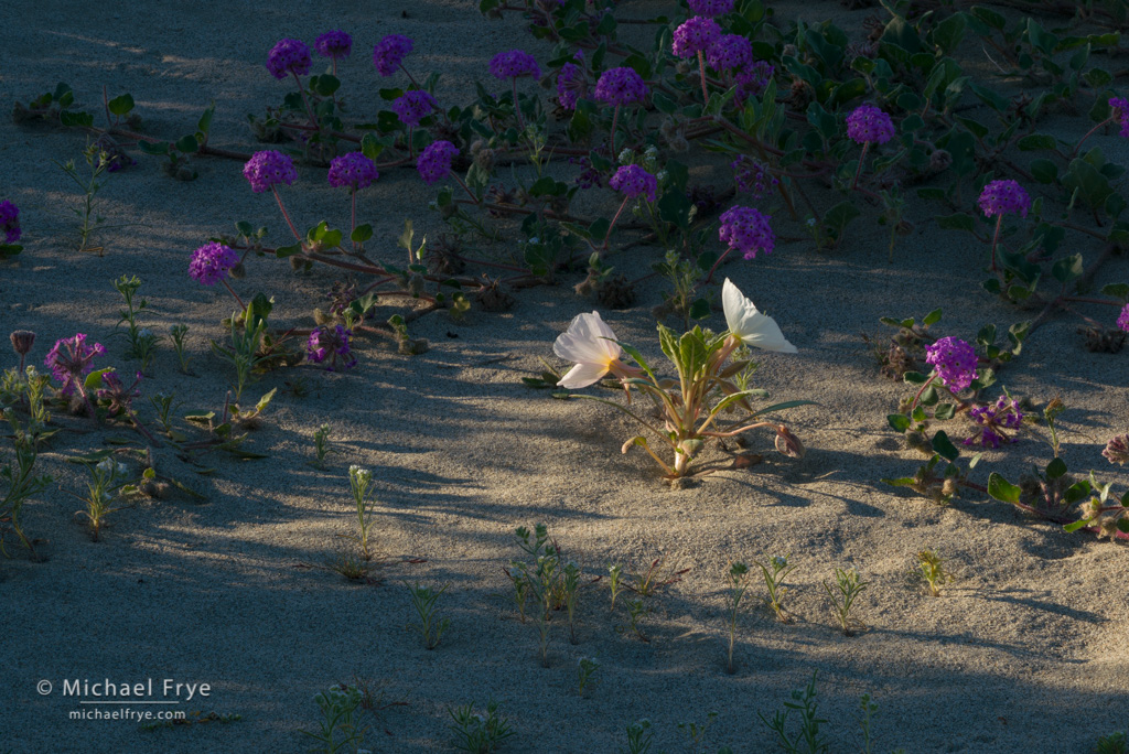 Primrose and verbena, Anza-Borrego Desert SP, California. 200mm, 1/15th of a second at f/16, ISO 100, polarizer, focus-stacked.