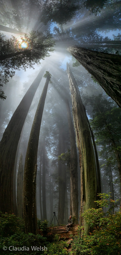 Many people seem to have a deep, instinctive connection with redwood forests. I’m certainly one of them. Every year Claudia and I journey to the northern California coast prior to our redwoods workshop, and one of our first stops is at a favorite redwood grove. I’ll get out of the car, step onto the trail, and enter the forest. I’ll see the huge trees soaring into the sky. My nose will catch the familiar, earthy smell of the redwoods. I’ll hear the buzzing call of a varied thrush – the soundtrack of the redwood forest. I’m home.
