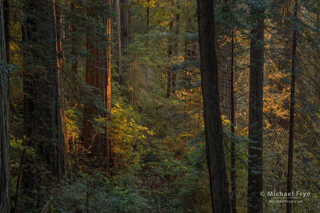 Thank you, Michael, this is very helpful! I must admit I really struggled when I was attempting to photograph the redwoods at Jedediah Smith last July; most of my images were pretty lackluster. I was hoping to get back there this year, but I’m going to have to cancel my flight to SFO, which was scheduled to leave on June 24. It’s just not the time to fly from Italy to the U.S. I just love the photo at the top of your post—my sister tells me the dogwood is blooming now in Plumas County and is just beautiful this year. I hope all is well with you and Claudia.