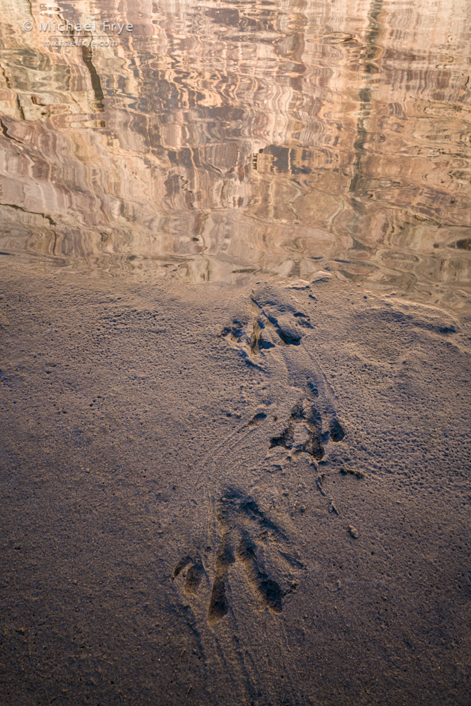 Beaver tracks emerging from the Green River, Dinosaur National Monument, Colorado