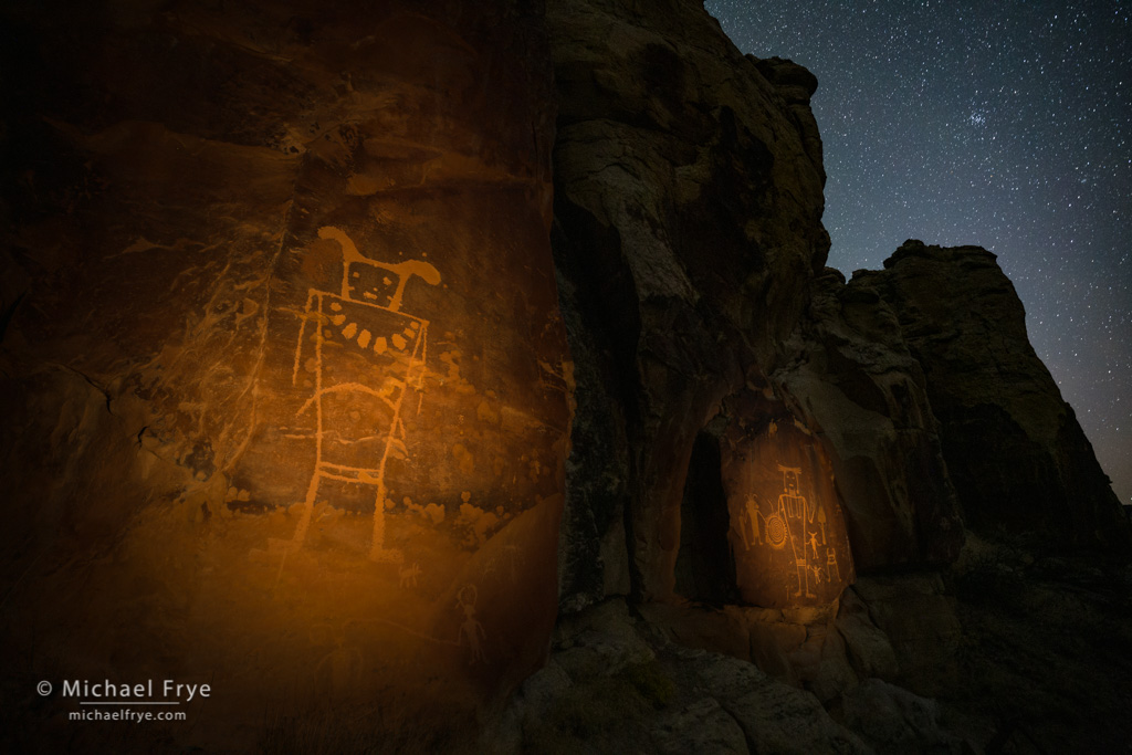 Fremont petroglyphs at night, Utah