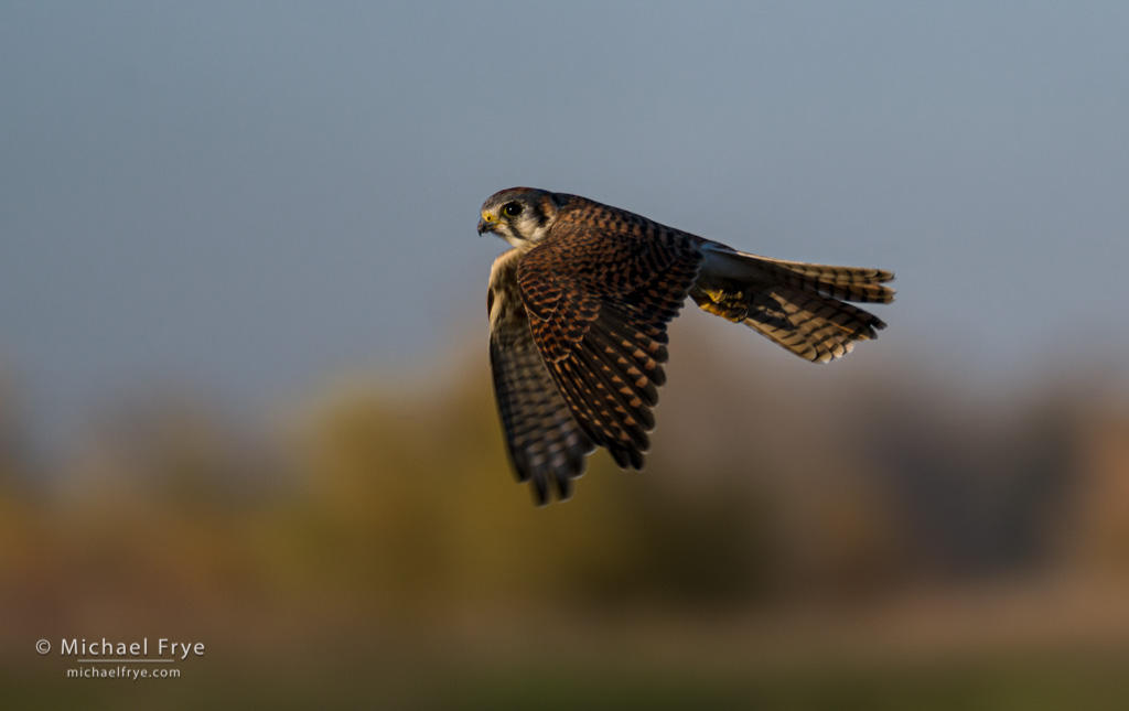 Northern harrier flying over a marsh in the fog, San Joaquin Valley, California. 400mm, 1/1000 sec. at f/8, ISO 640.
