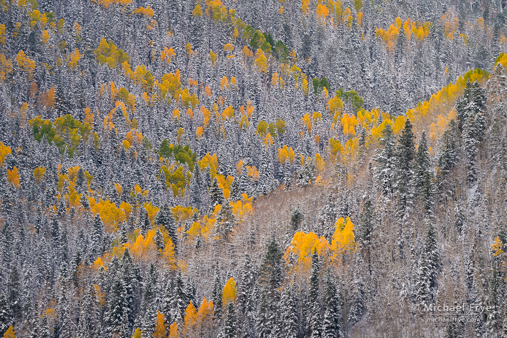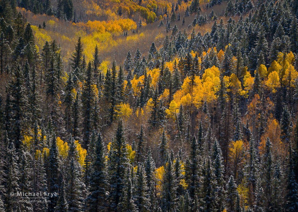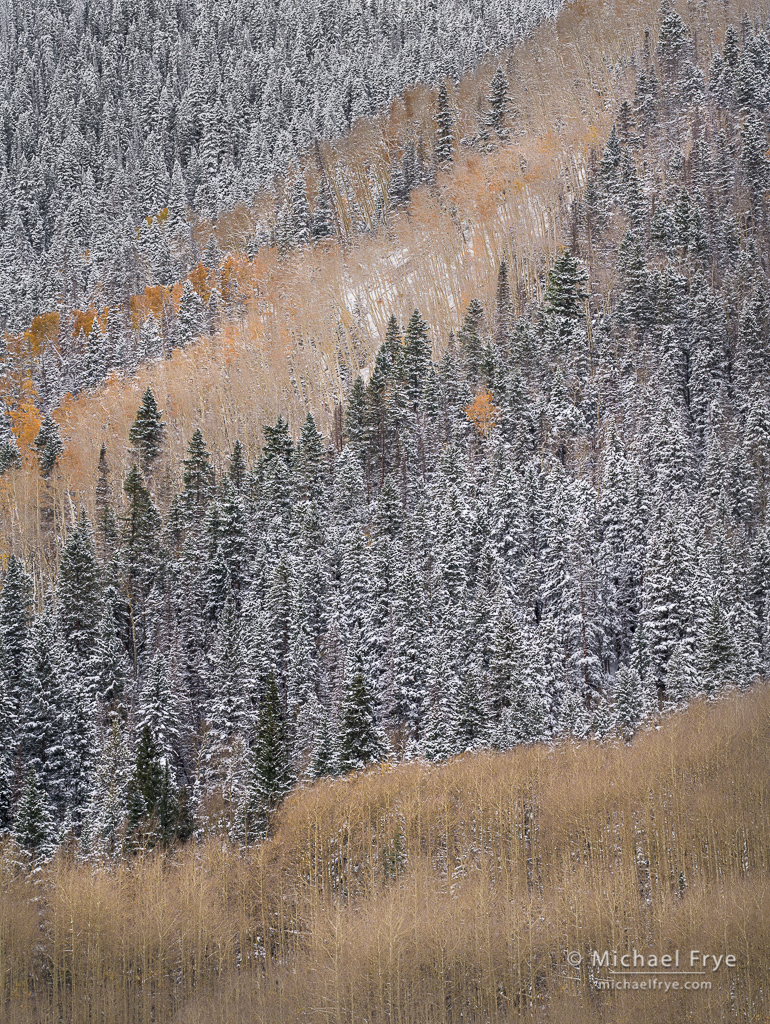 For me, one of the special treats this autumn (among many!) was the opportunity to photograph autumn aspens with snow. I did write about our brief trip to the eastern Sierra in early October, where I got to photograph some colorful aspens coated with snow. And then we got to do that several more times in Colorado.