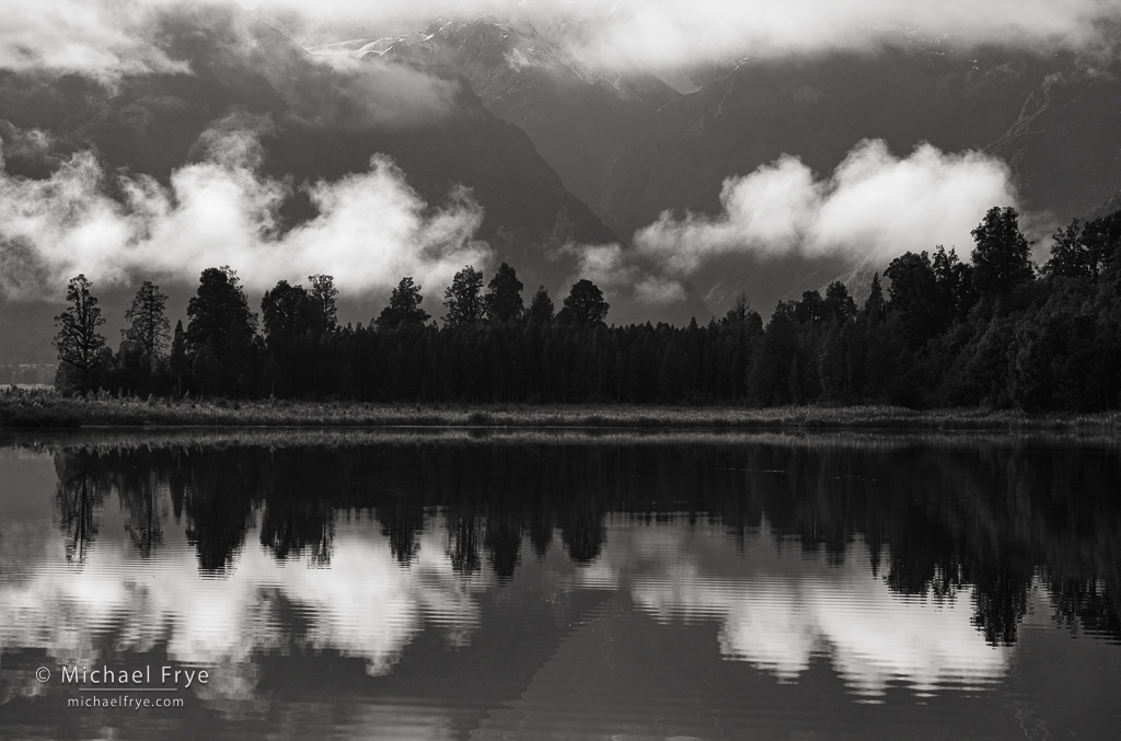 I love mountains, so I was quite taken with the Southern Alps and their snowy, alpine character, so different from the drier ranges of the western United States. I got to photograph a glacial lake, complete with icebergs that had calved off the glacier – not something you get to do in California. Before our workshop started I spent a few days around the lakes on the eastern side of the Alps, and got to experience a spring snowstorm. And over the next couple of weeks other storms added fresh dustings of snow to the mountains.
