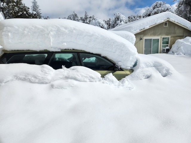 Our neighbor took this photo of our Subaru covered in snow. This is by far the most snow we’ve seen at our Mariposa house.