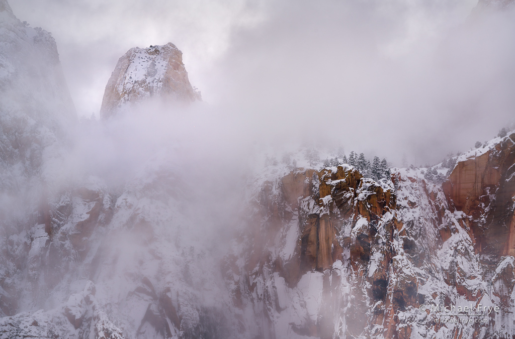 Cliffs and mist after a snowstorm, Zion NP, Utah