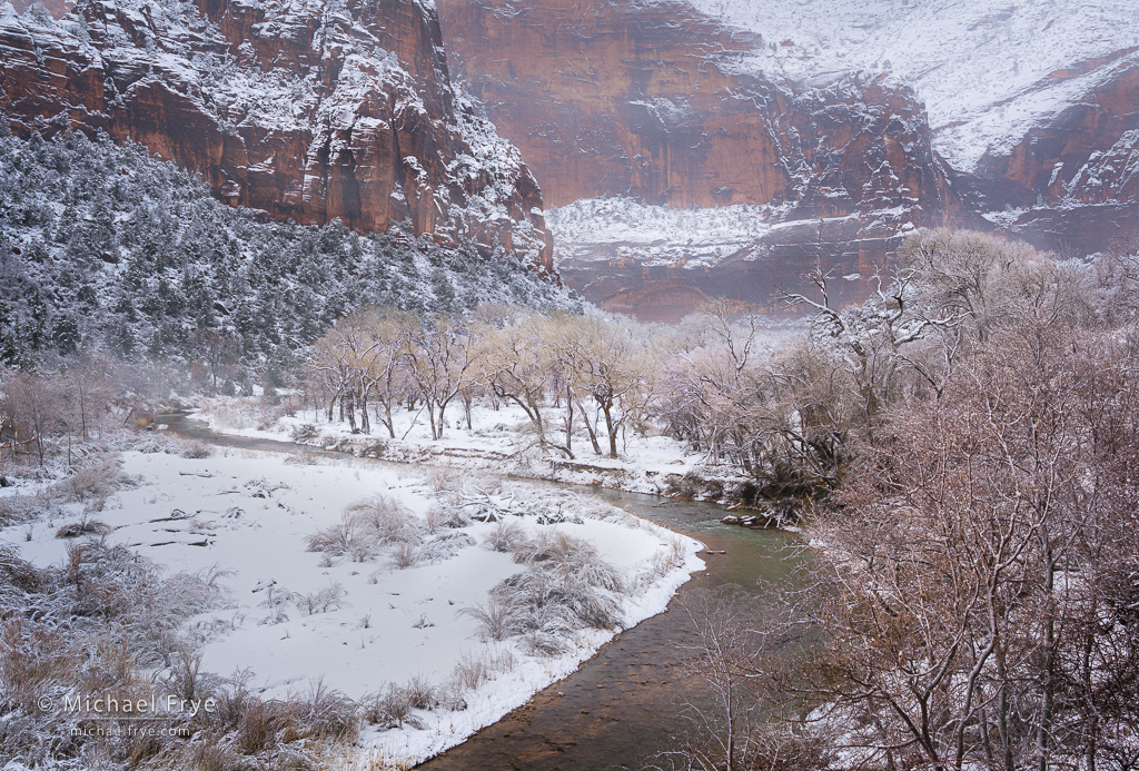 Zion Canyon and the Virgin River after a snowstorm, Zion NP, Utah