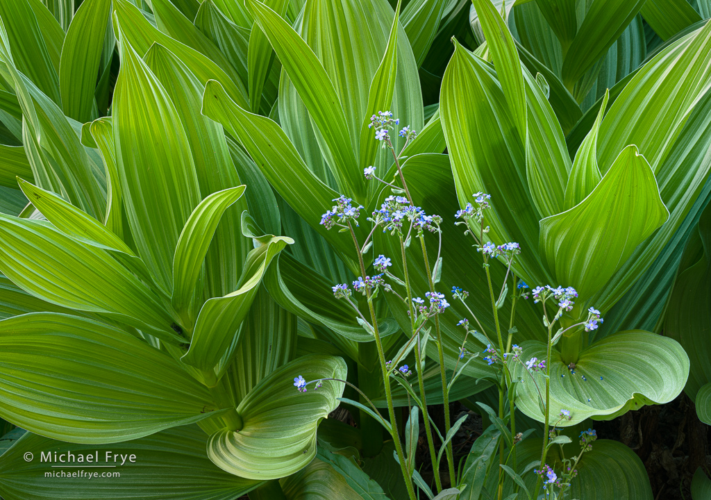 Corn lilies and forget-me-nots, Toiyabe NF, California. This time it was very calm, allowing for a long focus stack. 118mm, 0.7 seconds at f/16, ISO 100, five focus-stacked frames blended with Helicon Focus.