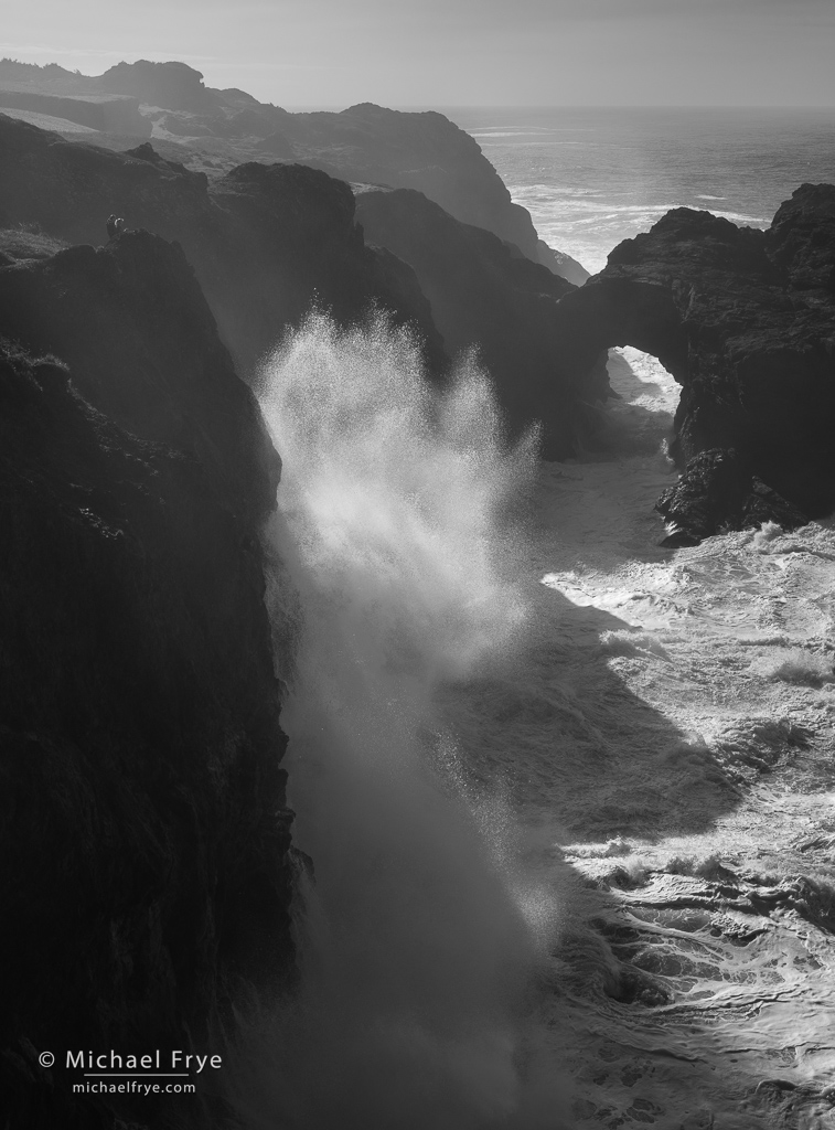 I used slow shutter speeds in almost all of the accompanying photos from the Oregon Coast, and that’s typical for me. Unless the waves or spray are truly special, I find slow shutter speeds more interesting, and more effective in creating a mood, and telling the story I want to tell.