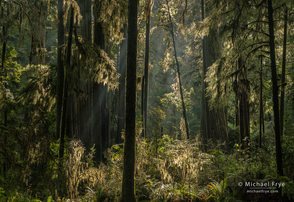 We only had one afternoon and one morning in the redwoods, as we had to get up to Oregon to scout for our workshop. But we had great conditions, with fall color, soft light, and even a little fog. It was great to scratch that long-standing itch to photograph the redwoods in autumn.
