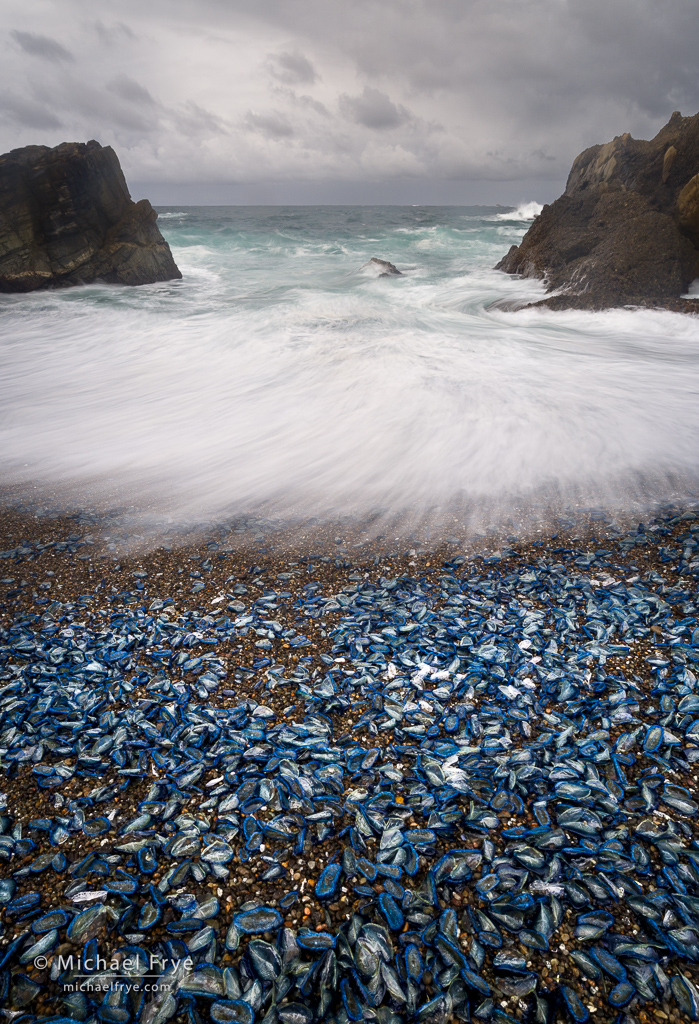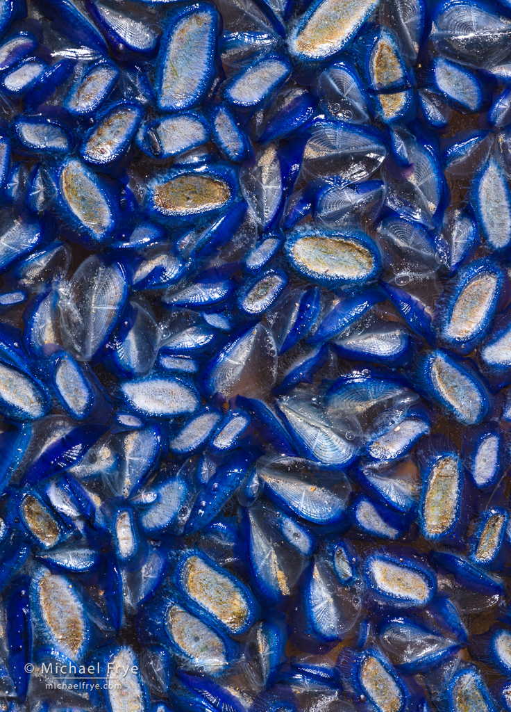 And just before the conference millions of Velella velella (“by-the-wind sailors”) started washing up on shore. These blue sea creatures have “sails” that catch the wind, and that’s their only form of propulsion. Sometimes large numbers of them get blown onto shore and stranded, and that’s what happened just prior to the conference. They made great photo subjects.