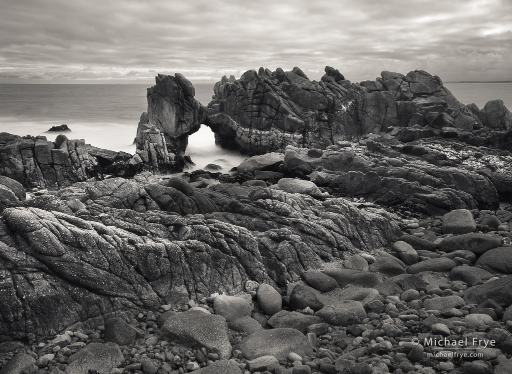 Arch, rocks, and clouds, Monterey Peninsula, California